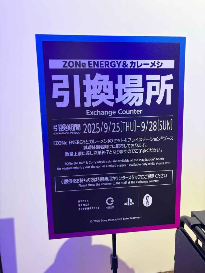 また、試遊体験者限定でZONe ENERGYとカレーメシが配布されていました。