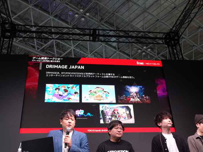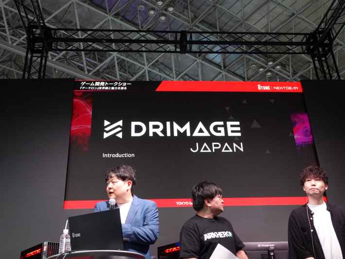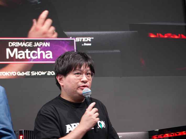 ゲスト登壇者は、DRIMAGE JAPAN代表取締役社長の中西啓太氏、同社Arkheron運営チームのMatcha氏、そしてゲーム実況グループ「三人称」のドンピシャ氏、ぺちゃんこ氏、鉄塔氏が務めました。